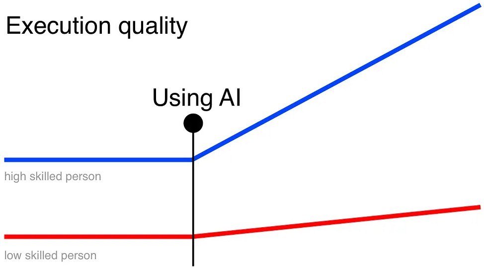 Использование ИИ само по себе малоэффективно, если у человека низкий уровень квалификации.