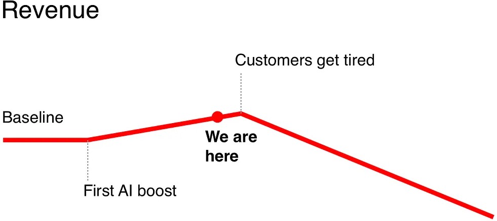 Искусственный интеллект может немного улучшить ваши результаты поначалу, но потом всё станет хуже.