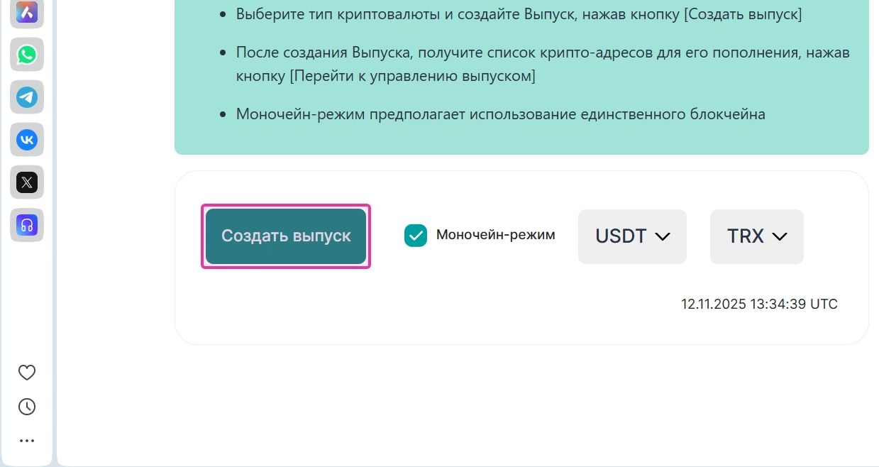 10. Для управления вашим криптокошельком перейдите в раздел "Выпуски"