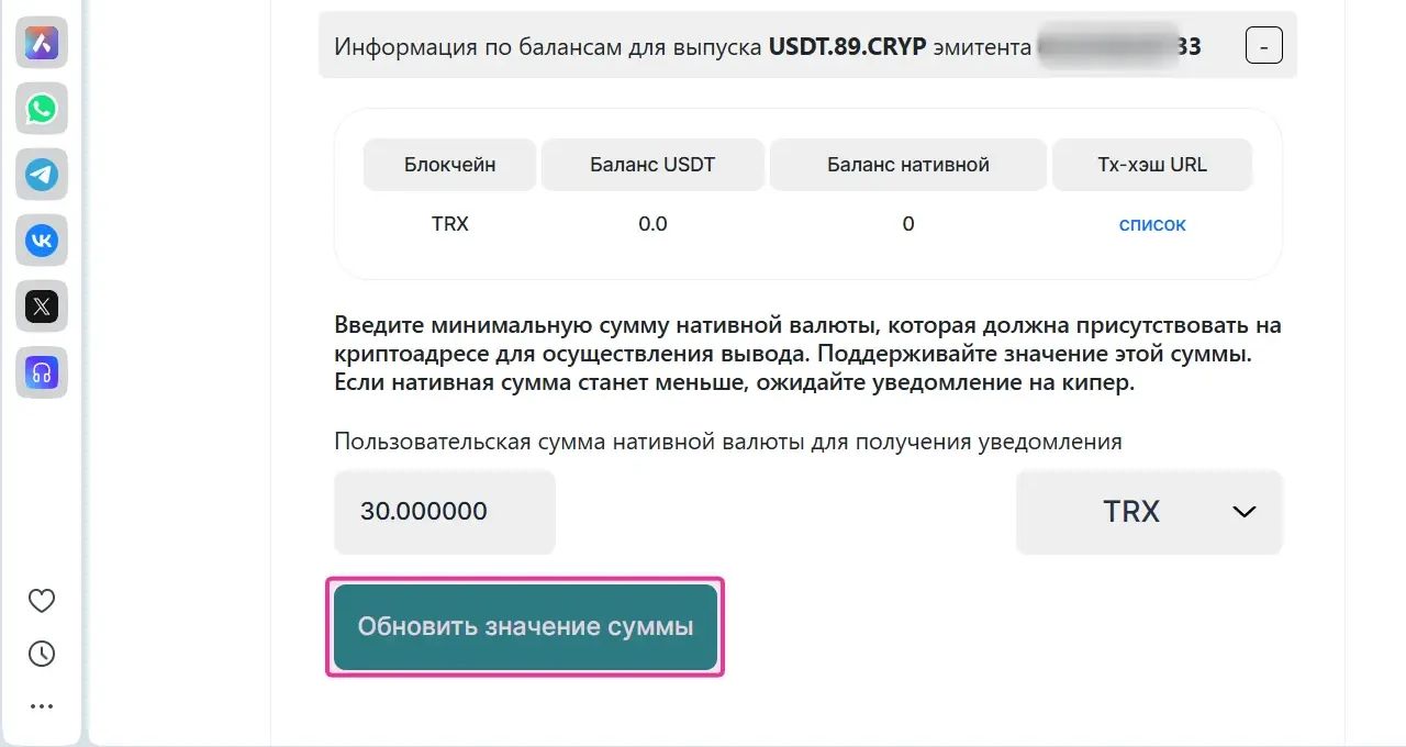 8. Пополните выданный криптоадрес на нужную сумму и дождитесь автоматической регистрации пополнения. После пополнения появится возможность создать крипто-чек.